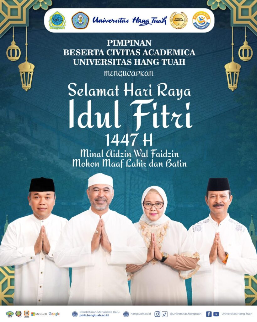 Maret 22, 2026byAdmin Pimpinan dan Civitas Academica Universitas Hang Tuah mengucapkan Selamat Hari Raya Idul Fitri 1447...