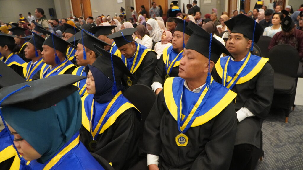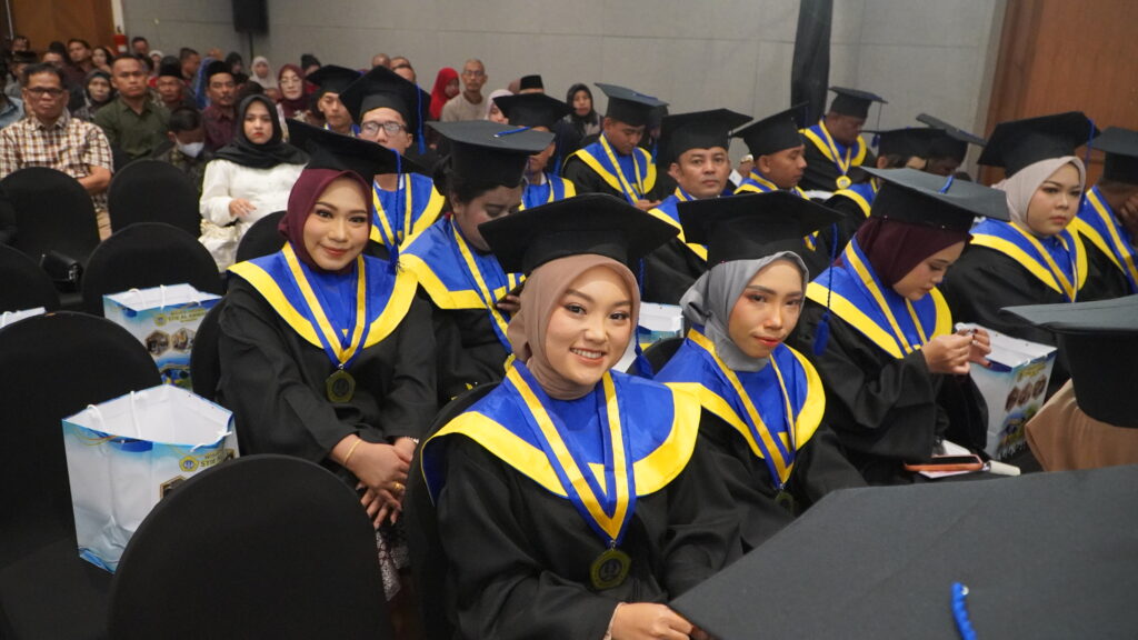 Prosesi wisuda berlangsung meriah dengan rangkaian laporan akademik, pembacaan SK kelulusan, pengalungan medali, hingga pernyataan rasa syukur dari perwakilan wisudawan yang berterima kasih kepada orang tua, dosen, dan almamater.