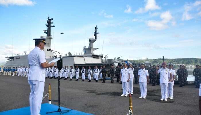 Ambon, – TNI AL-Kodaeral IX (13/4/2026). Komandan Kodaeral IX Laksamana Muda TNI Hanarko Djodi Pamungkas, S.H. mengukuhkan tiga jabatan Komandan Satuan strategis dijajarannya dalam upacara militer Penyerahan dan Pengukuhan Jabatan Dansatrol Kodaeral lX, Dandenma Kodaeral lX serta Dandivhanratlan Sathantai Kodaeral IX di Dermaga Irian Mako Kodaeral IX, Halong, Kota Ambon, Maluku, Senin (13/4/2026).