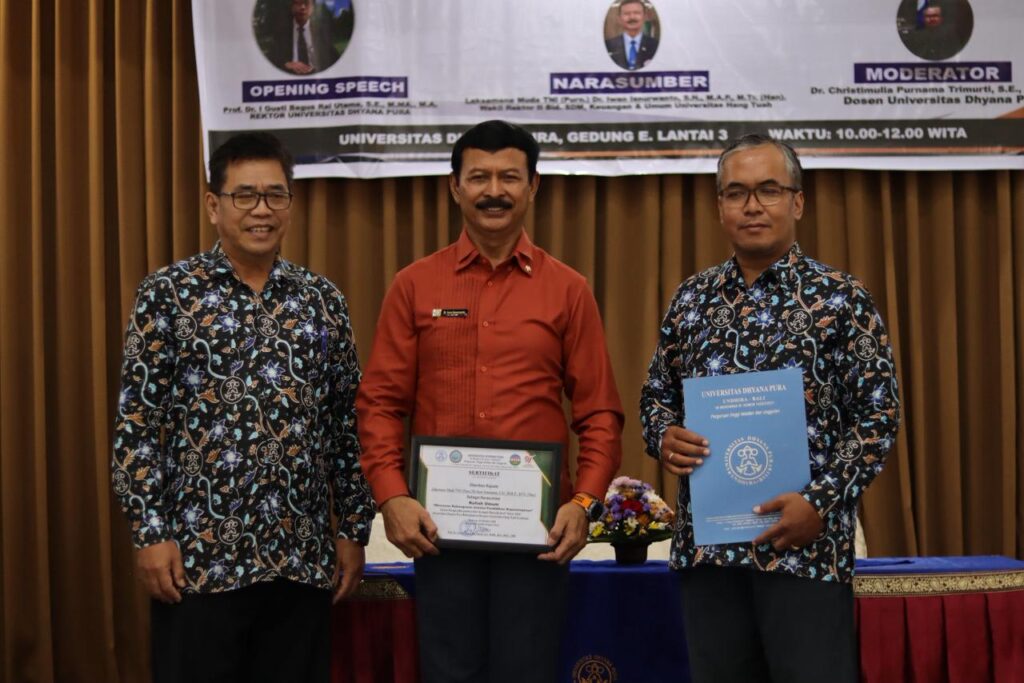 Bali, 22 Oktober 2025 — Wakil Rektor II Universitas Hang Tuah (UHT) Surabaya, Laksamana Muda TNI (Purn) Dr. Iwan Isnurwanto, S.H., M.A.P., M.Tr.(Han)., tampil sebagai narasumber dalam Kuliah Umum Karakter di Universitas Dhyana Pura (Undhira), Bali. Acara ini mengusung tema “Wawasan Kebangsaan melalui Pendidikan Kepemimpinan” dan diikuti lebih dari 300 peserta yang terdiri atas mahasiswa dan dosen Universitas Dhyana Pura.
